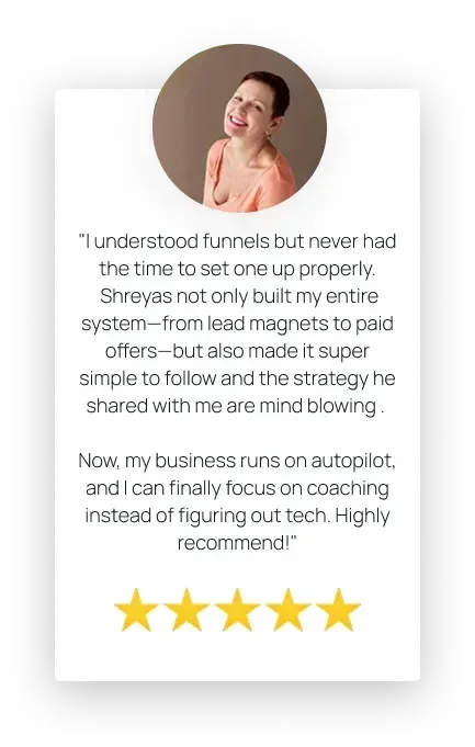 Meet Shreyas R , an Automated sales Funnel Expert . With a track record of helping over 100+ coaches, consultants, and course creators Across USA and Cannada to sell thier courses on Auto-Pilot , Shreyas has built high-converting funnels/systems that generate warm leads, automate sales, and create predictable revenue. His expertise lies in crafting premium, done-for-you funnel systems that allow coaches & course creators to sell their courses automatically, results in having automated income streams. Trusted by industry experts, Shreyas is dedicated to simplifying growth and helping coaches build sustainable online businesses.